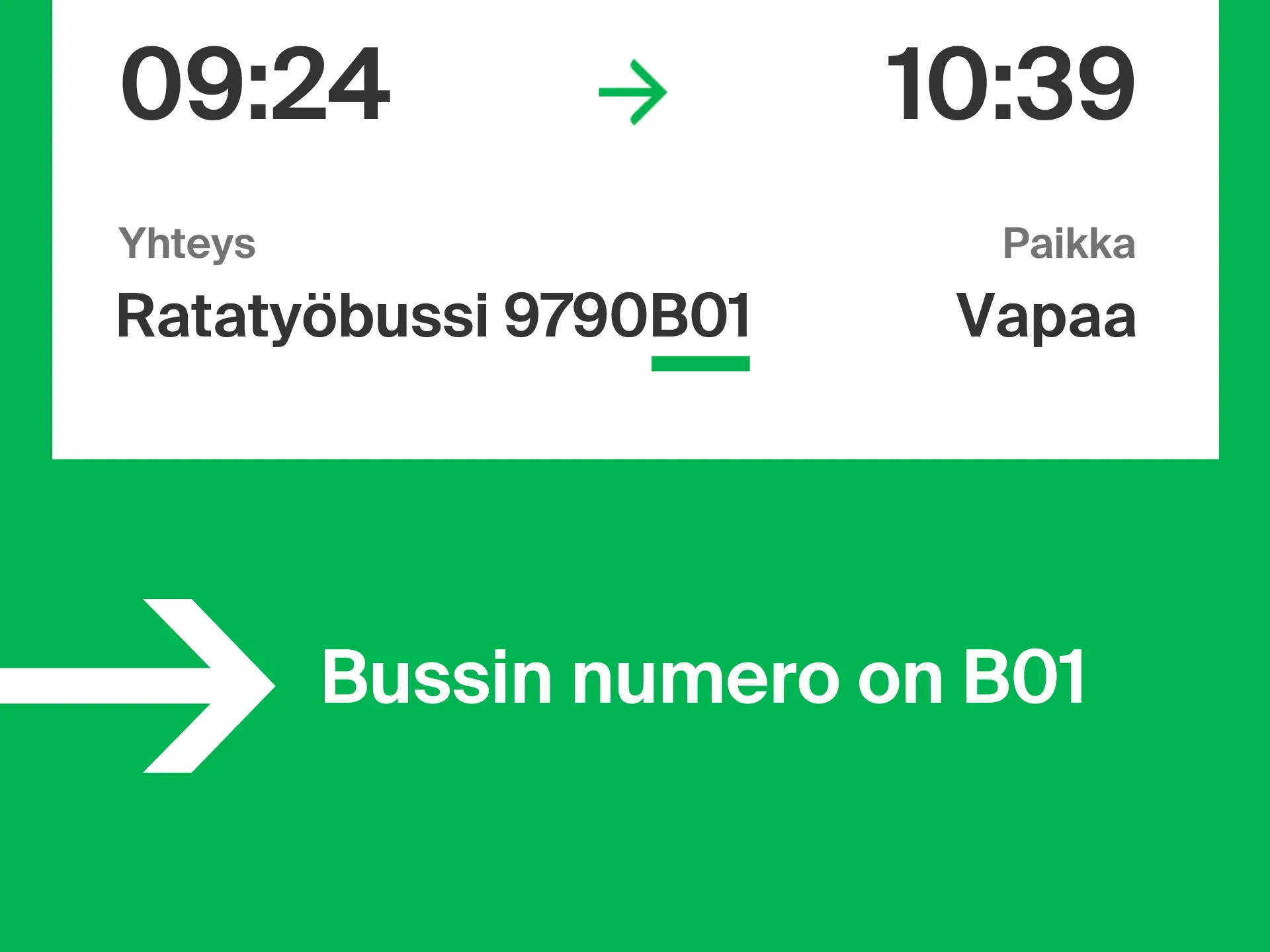 Jos matkaasi kuuluu ratatyöbussi, tieto ratatyöbussin linjatunnuksesta löytyy aina matkalipustasi. Mikäli lipussasi on pitkä numerosarja, käy ratatyöbussin linjatunnus ilmi bussinumeron lopusta.