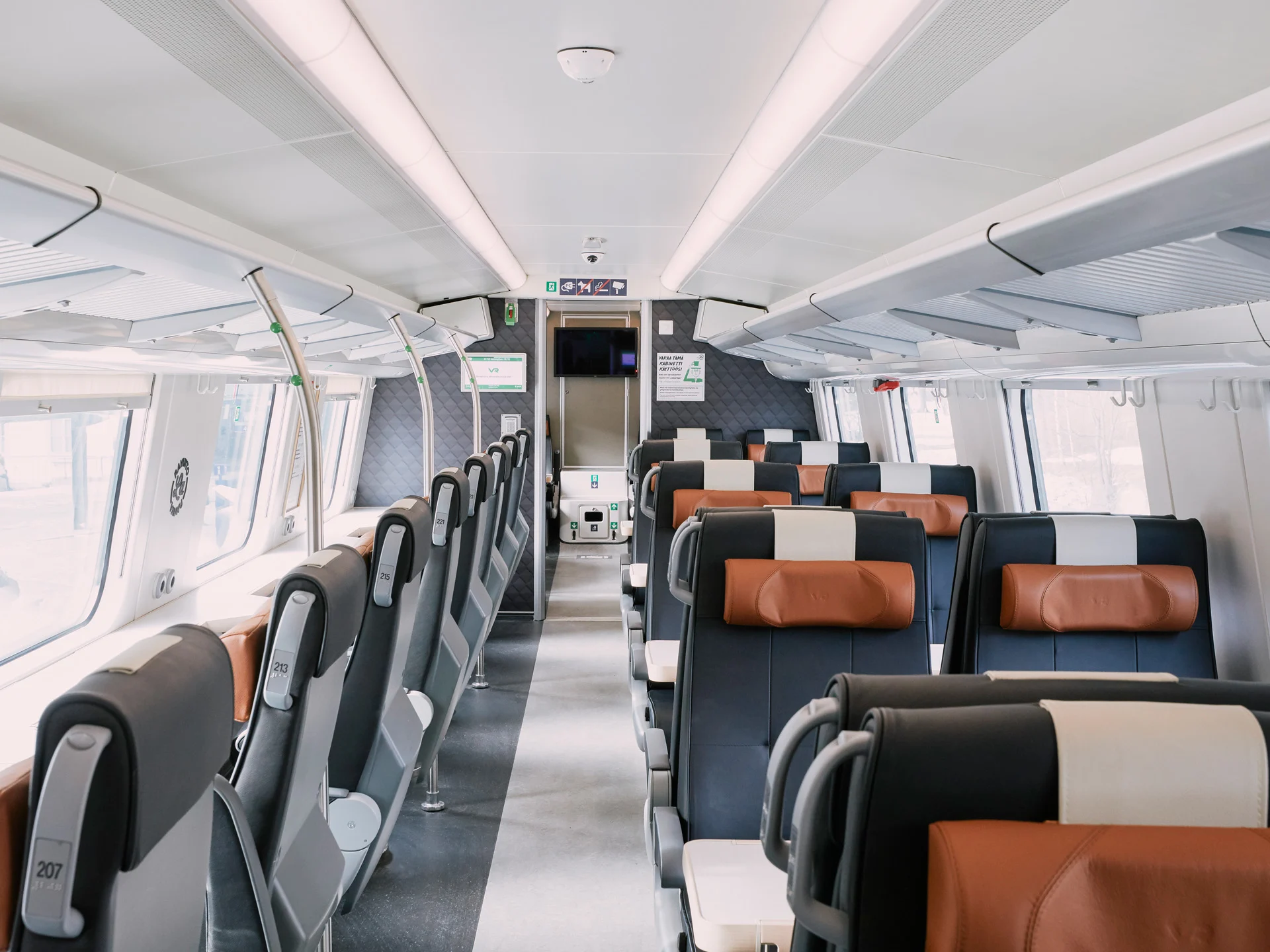 Kabinetissa on 2 näyttöä, joita voit hyödyntää kokoustaessa. Pyydä konduktööriä avaamaan AV-kaappi matkan alussa.