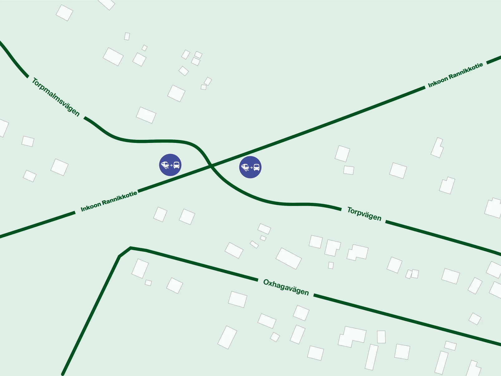 Bussin pysähdyspaikka on Torp th Länsi ja Torp th Itä.