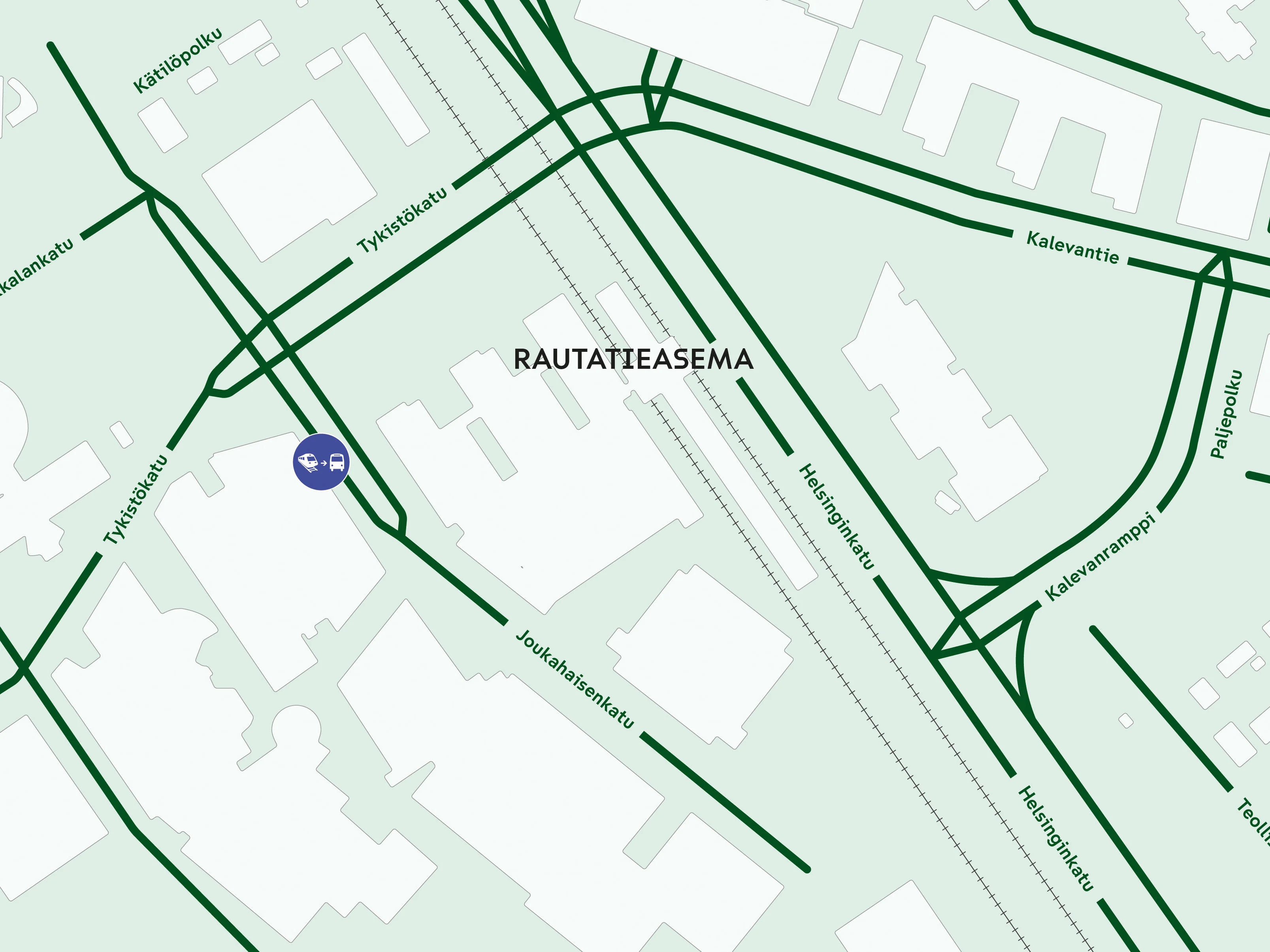 Klikkaa auki oma lähtö- tai pääteasemasi ja tarkista ratatyöbussin tarkempi lähtöpaikka.