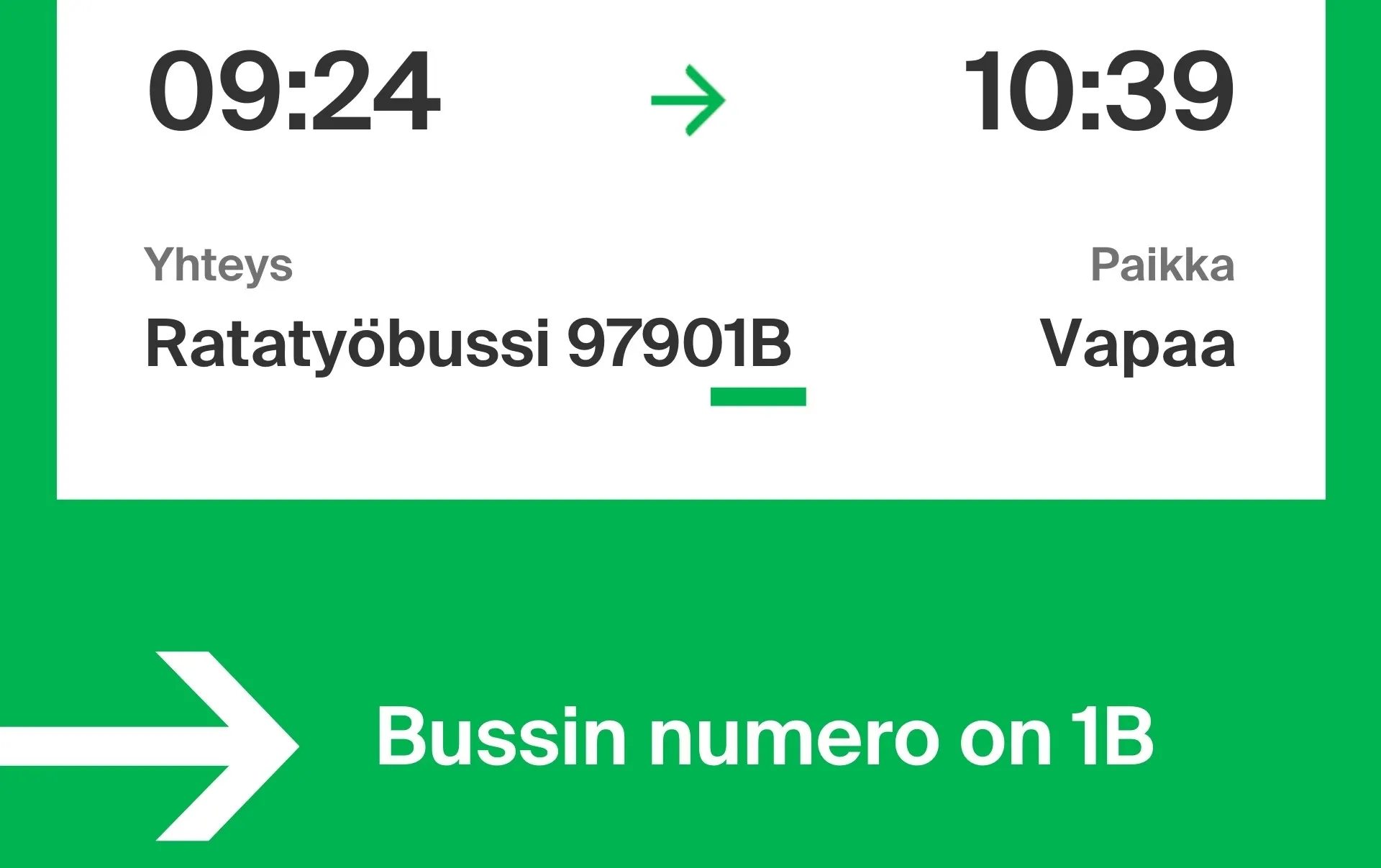 Jos matkaasi kuuluu ratatyöbussi, tieto ratatyöbussin linjatunnuksesta löytyy aina matkalipustasi. Mikäli lipussasi on pitkä numerosarja, käy ratatyöbussin linjatunnus ilmi bussinumeron lopusta.