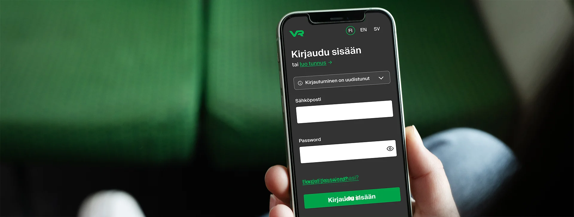 Om du just nu är inloggad i appen VR Matkalla eller vr.fi loggas du inte ut automatiskt. Vi rekommenderar dock att du loggar ut när det passar dig så att du kan prova den nya inloggningen och ändra lösenord i lugn och ro – och inte först när du rusar till tåget.