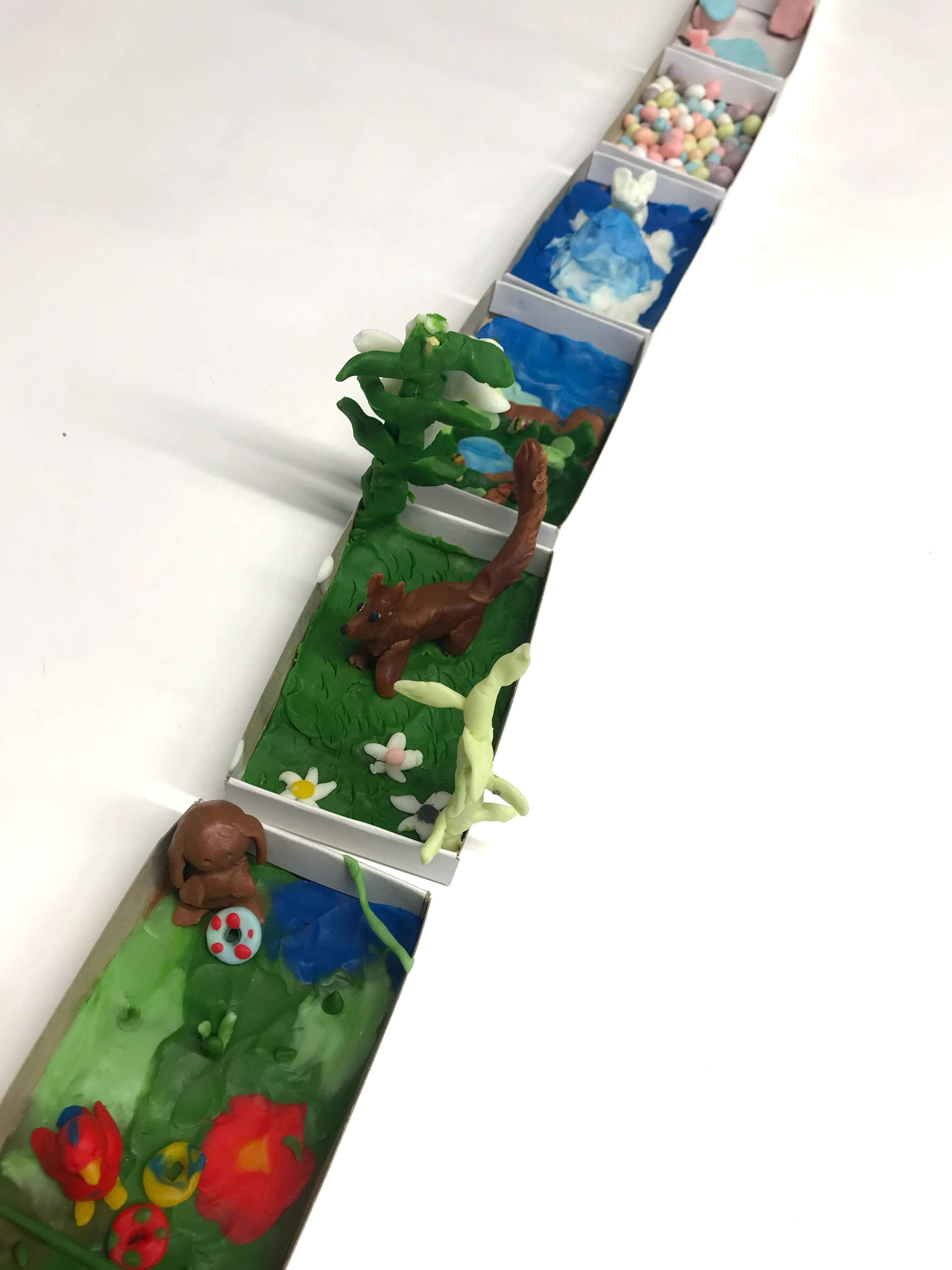 Lasten teoksissa ajatukset liikkuivat omassa ikääntymisessä ja siinä, mitkä asiat ovat edelleen tärkeitä: luonto, eläimet, hyvä ruoka sekä puhdas energia. Lasten teoksissa junamatkalla 2072 voi hoivata puutarhaa, hemmotella lemmikkiä VIP-vaunussa tai hyppiä 1000 km tunnissa kulkevassa pomppulinnassa. Välipalaksi voi napata vaikkapa roskamuovista uutettuja donitseja. Rauhallisempiin tunnelmiin saattoi päästä lukuvaunussa ja muistojen pariin oli mahdollista upota vaunussa, joka täyttyi kaikenlaisista vanhoista esineistä ja muistoista. Hypertyhjiössä leijuen kulkeva juna on myös 50 vuoden päästä ekologisin matkustusvaihtoehto.